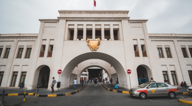 باب البحرين هو ما يعني بوابة و هو المدخل الرئيسي لسوق المنامة. يضم الدور الأرضي لباب البحرين مكتب المعلومات السياحية والمتجر المليء بالكتب الإرشادية والحرف اليدوية واللؤلؤ الطبيعي المعروض للبيع، ويعتبر هذا المتجر أول محطة لوقوف السياح، بينما تتوفر سيارات التاكسي في هذا المكان لتُعيد السياح الى الفنادق أو السفن. شهد هذا السوق النشط بمتاجره التقليدية والمعاصرة مؤخرا مرحلتين من التجديد، و وفقا لما ذكره مسؤلون كان الهدف الرئيسي للمشروع إعادة تصنيف سوق المنامة ليكون مركز حضري كبير يتمتع بالاكتفاء الذاتي، من خلال إعادة السوق الى مكانته البارزة ضمن الحياة اليومية في البحرين.