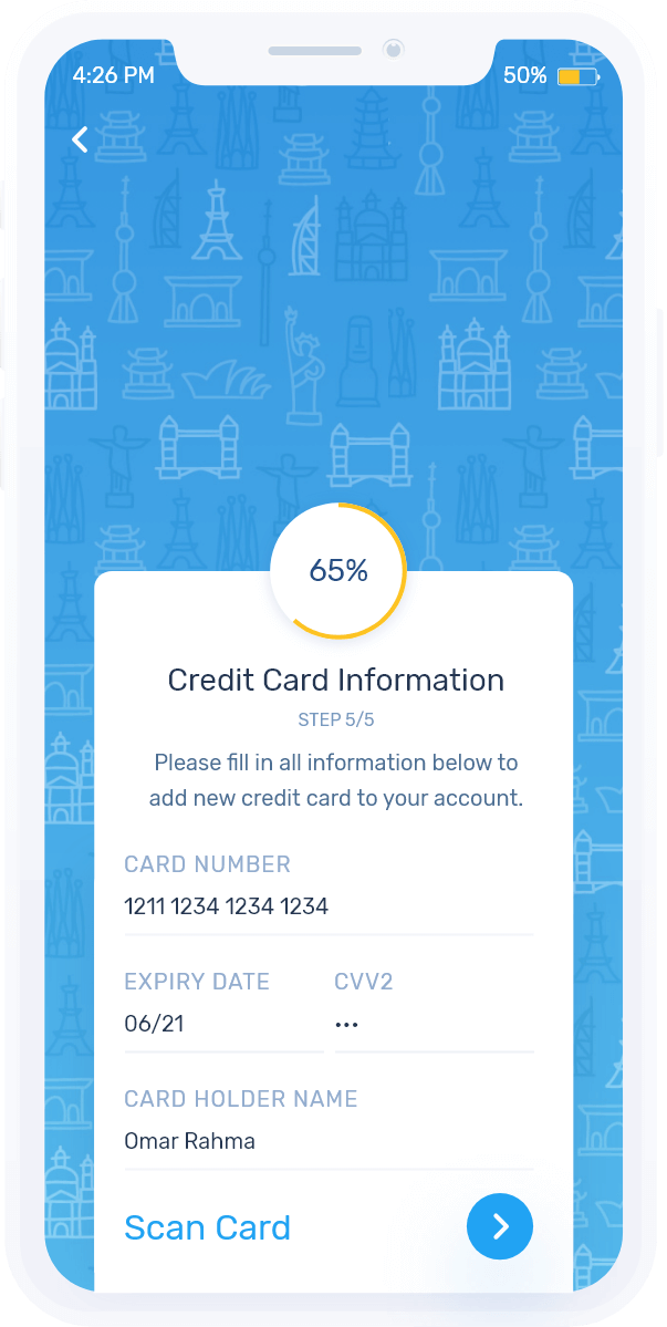 Enter your name, card number & expiry date to make your booking easier.