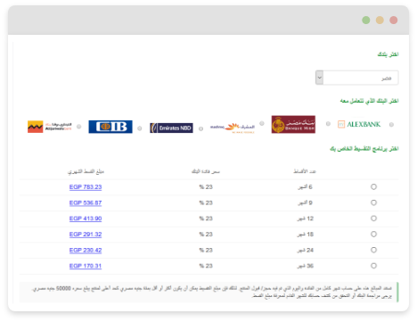 تترواح فترات السداد الممكنة من 3 أشهر وحتى 60 شهرا (هذا يرجع الى البنك الخاص بك)